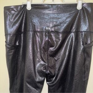 Women’s GapFit Sky High Rise Power Sine Black Shiney Leggings w Pockets Size XL