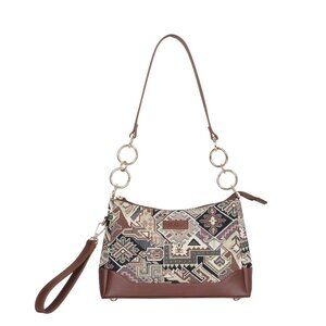 Women’s Geometric Pattern Tapestry Fabric Sling Shoulder Bag, Satchel Purse