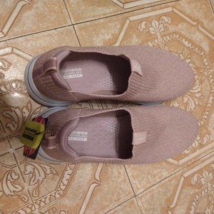 Skechers air cooled goga mat go walk size 9. New with tags. However, the soles are a little bit darkened so someone must have tried them on to see if they fits. Machine washable.