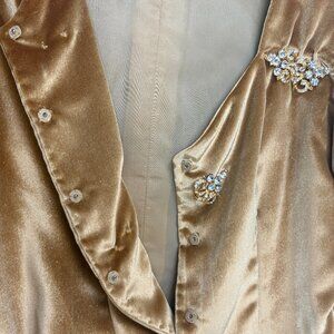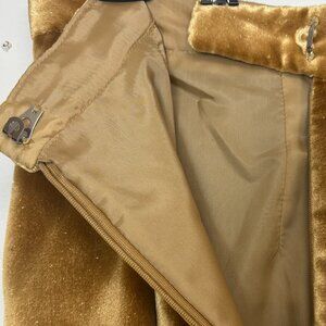 Women’s Gold 2-Piece Velvet Jacket and Skirt Set W/Brooch-Like Embellishments