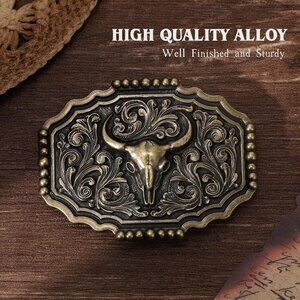 NOVELTY BULL BELT BUCKLES: The cowboy buckles for men measures 3.7" in diameter and 2.8" in height. Weight: 2.7oz/77.8g. The Western belt buckles for men women are suitable for 1.5 inches wide belt.