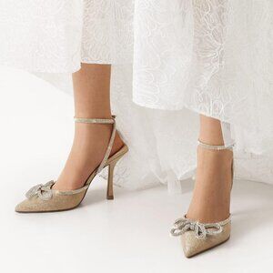 Sparkly Bow: Shine like a star with these decorative shimmering bow high-heel pumps that are sure to get you noticed