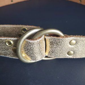Women's Gold Metallic Leather Belt w/ Grommets & Adjustable Double Ring Buckle