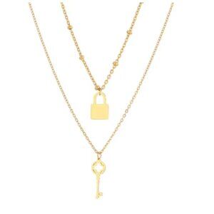 Trendy and versatile, this stainless steel necklace features layered chains with a lock and key pendant and delicate beaded accents. At 50 cm (19.5"), it’s the perfect statement length for everyday wear or layering with your favorite pieces. Durable, stylish, and designed to stand out.