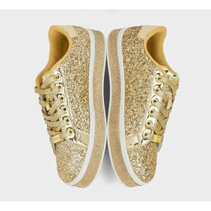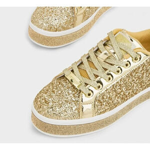 Women's Gold Platform Glitter Sneakers | Sparkly Bling Shiny Dressy