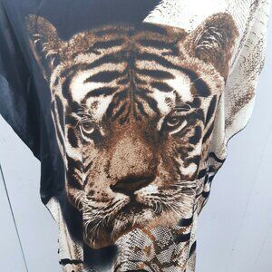 Womens Graphic Top Front and Back Tiger Face Photo Print Tunic Medium Animal Print Semi Sheer All Over Print