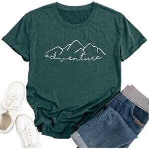 Funny Printed.Mountain adventure letter print shirt;cute mountain graphic short sleeve