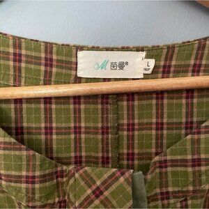 Women’s Green Plaid Vintage Swing Dress – Retro Style – Size X-Large