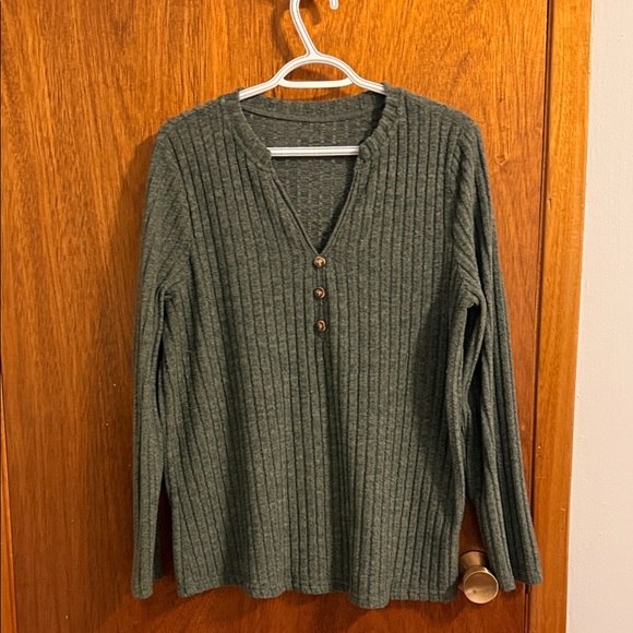 Stay cozy and stylish with this green ribbed sweater. Perfect for any casual outing.