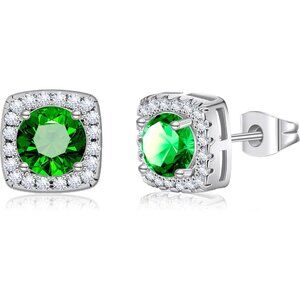 Women's Green Square Simulated Dainty Diamond Halo Sparkling Stud Earring