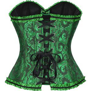 Women's Green/Black Lace up Boned Bustier Floral Overbust Corset for Halloween