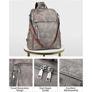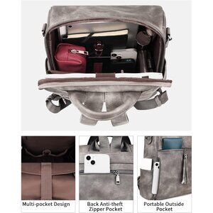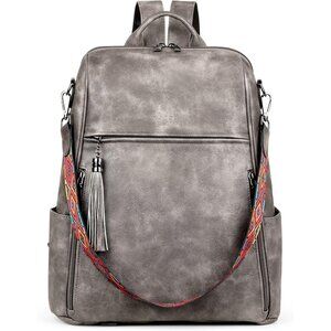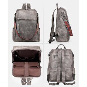 Women's Grey Retro Style Backpack Designer 15.6 inch PU Leather Laptop Bags
