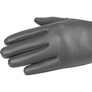 Women's Grey Winter Fashion Leather Windproof Warm Suede Driving Dress Gloves