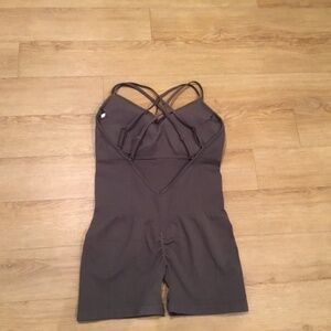 Brand new without tags grey one piece workout V back scrunch yoga romper.