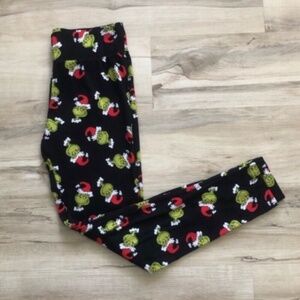 Cozy up in these stylish Grinch print pajama pants. Featuring a playful design on a black background, these pants are perfect for a fun and comfortable night's sleep.