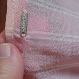 🌻Women's Guess Pink & White Sheer Striped Feminie Romantic Blouse