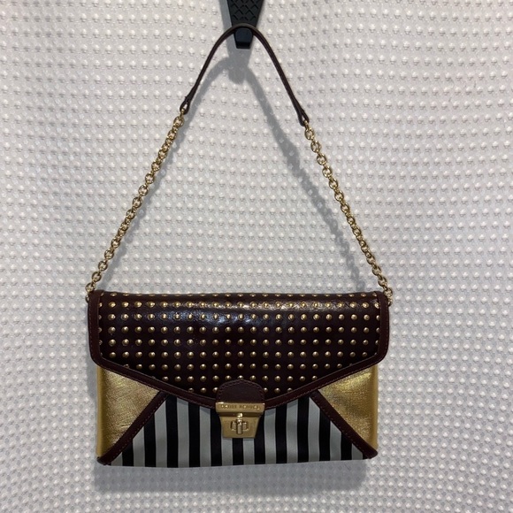 Women’s HENRI BENDEL brown and gold shoulder bag/clutch with gold hardware