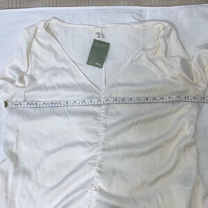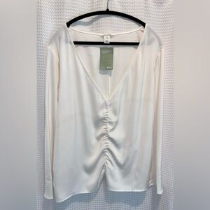 Women’s H&M long sleeved gathered front silky white top size XXL NWT