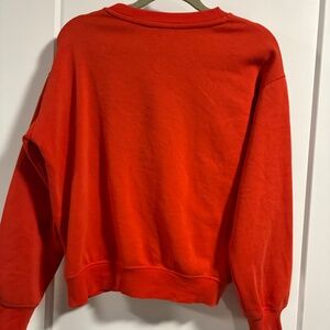 Fits Medium comfortably, possibly small large as well. Great saturated orange colour. Super cozy.
