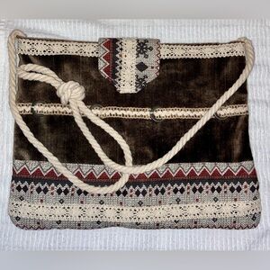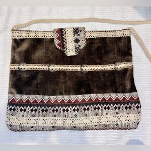 Women’s Hand Made brown Velvety Corduroy Fabric crossbody Bag, cotton lace
