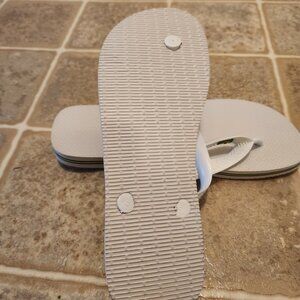 Slim flip flop with a cushioned footbed and textured pattern; rubber sole; white color; size US 8; they have never been worn before.