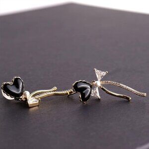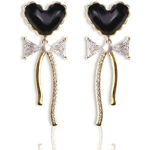 Women's Heart Black Dangle Sparkly Cubic Zirconia Crystal Rhinestone Earring