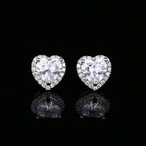 Women's Heart White Elegant Mall Dainty Halo Birthstone Cubic Zirconia Earring