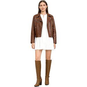 Women's Heeled Brown Knee High Boots Zip Up Chunky Heel Tall Boots for Womens