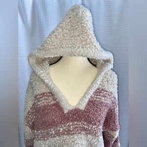 Women’s Hippie Rose dusty pink and beige hooded knit sweater size Large