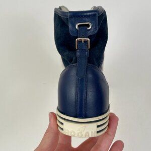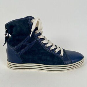Women's Hogan Rebel R182 High Top Sneakers, Navy Blue Leather/Suede, Size 39