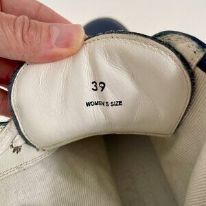 Amazing pair of hi-tops from the Italian luxury streetwear brand. Smooth navy blue leather toe and trim, with navy blue suede on the sides. Logo label on the tongue, heel and insole, and trademark Hogan embossed leather H on the side. Interiors made of fabric and leather with removable insoles. These beauties will level up your wardrobe big-time! If you know, you know.