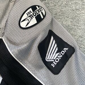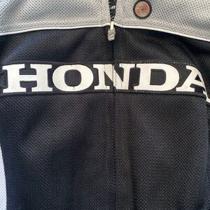 Stylish Honda motorcycle jacket. Features bold branding. Durable and sleek design.