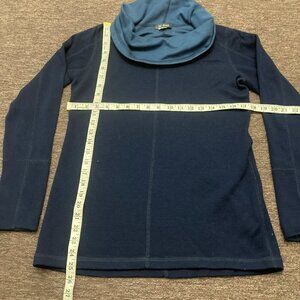 Women's Ibex Blue Dyad Cowl Neck Pullover Merino Wool Sweater Sweatshirt Sz M