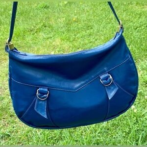 Women’s Isadora dark royal blue 100% genuine Leather crossbody purse thin strap