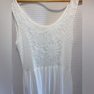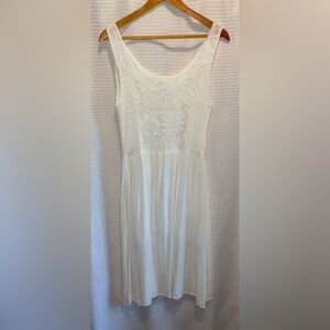 Women’s Italian white sleeveless lace&crochet top + flowy bottom dress Sz Large