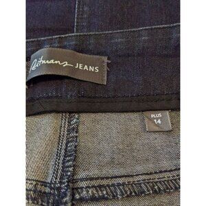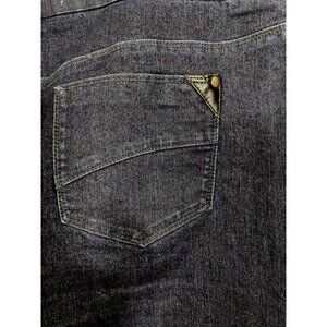 Womens Jean Pencil Skirt Size 14 Dark Wash Denim Blue Back Slit Stretch Pockets