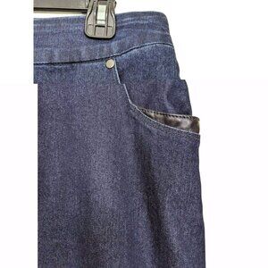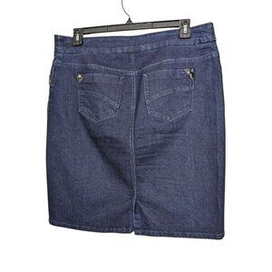 Womens Jean Pencil Skirt Size 14 Dark Wash Denim Blue Back Slit Stretch Pockets