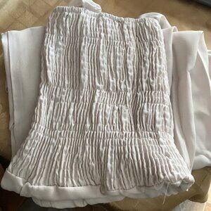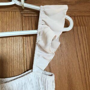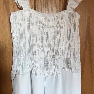 Womens Jumpsuit White Small Sleeveless Ruffled Smocked Bodice & Wide-Leg Design