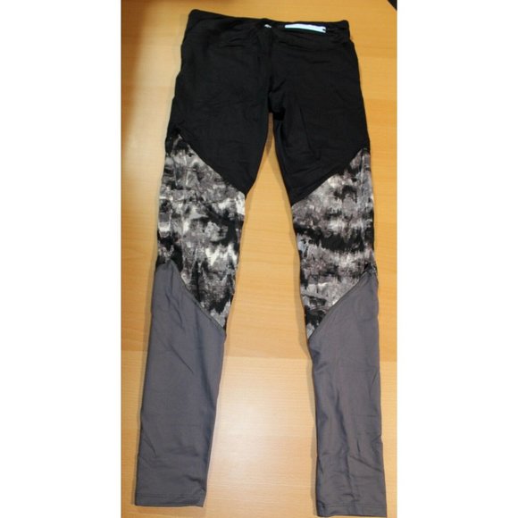 Womens Juniors Forever 21 Leggings Medium Black Gray Colorblock Tie-Dye Athletic
