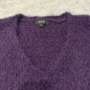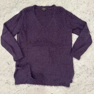 Fuzzy purple Long Sleeve V-Neck has slits on the sides at the bottom hem for added comfort!