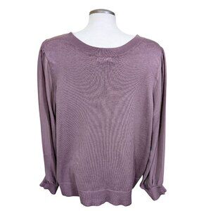 Womens Knit Sweater Plus 3X Mocha Mousse Brown V Neck Boho Sheer Balloon Sleeves