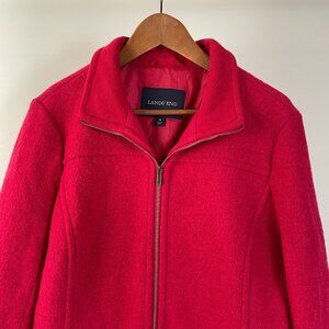 Women's Lands' End Boiled Wool Blend Zip Up Jacket Coat, Cherry Red, Size 14