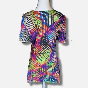 Elevate your wardrobe with this vibrant short sleeve top, featuring a dynamic multicolor pattern. Perfect for adding a bold touch to any ensemble.
