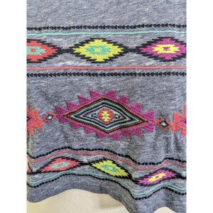 Womens Large Cropped T Shirt Top Southwest Aztec Gray Cotton Blend Boho Summer