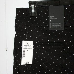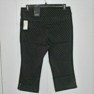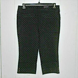 Womens Large New Capris Cropped Pants Smoothing Black White Polka Dot Stretch
