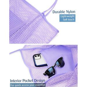 Women's Lavender Mesh Beach Tote Nylon/polyester No-closure Shoulder Hand Bag