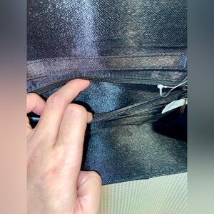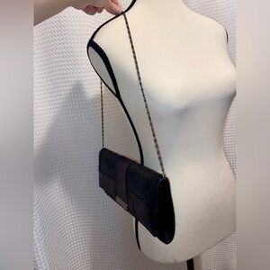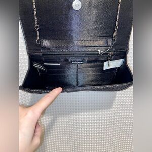 Women’s Le Château sparkly and shiny black chic Clutch with removable chain