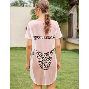 🆕Women's Leopard Print Bikini Cover-Up Dress, Polyester, Short Sleeve, Fun Wear