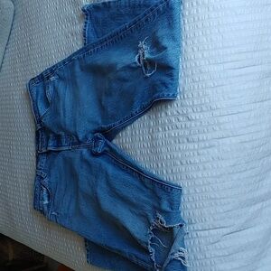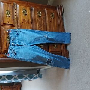 - light wash, with distressing on front & bqck of jeans