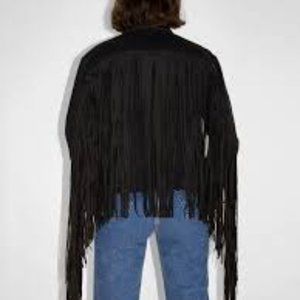 Selling a Levi's fringe jean jack in black. Like new condition. Purchased at retail price for over 200 dollars at the Levi's store. Baggy fit. Size small.